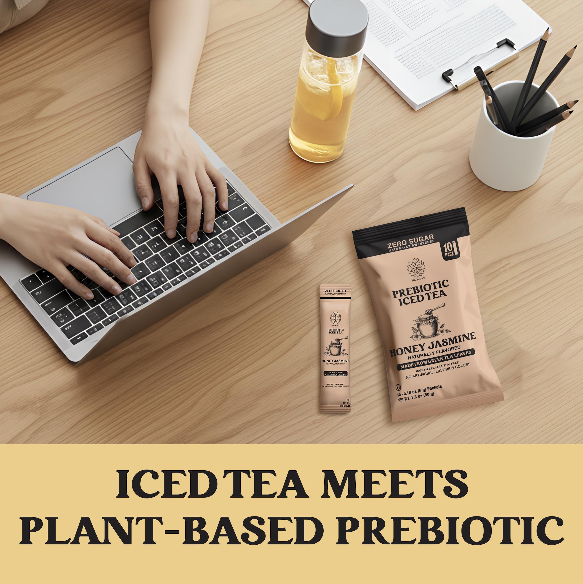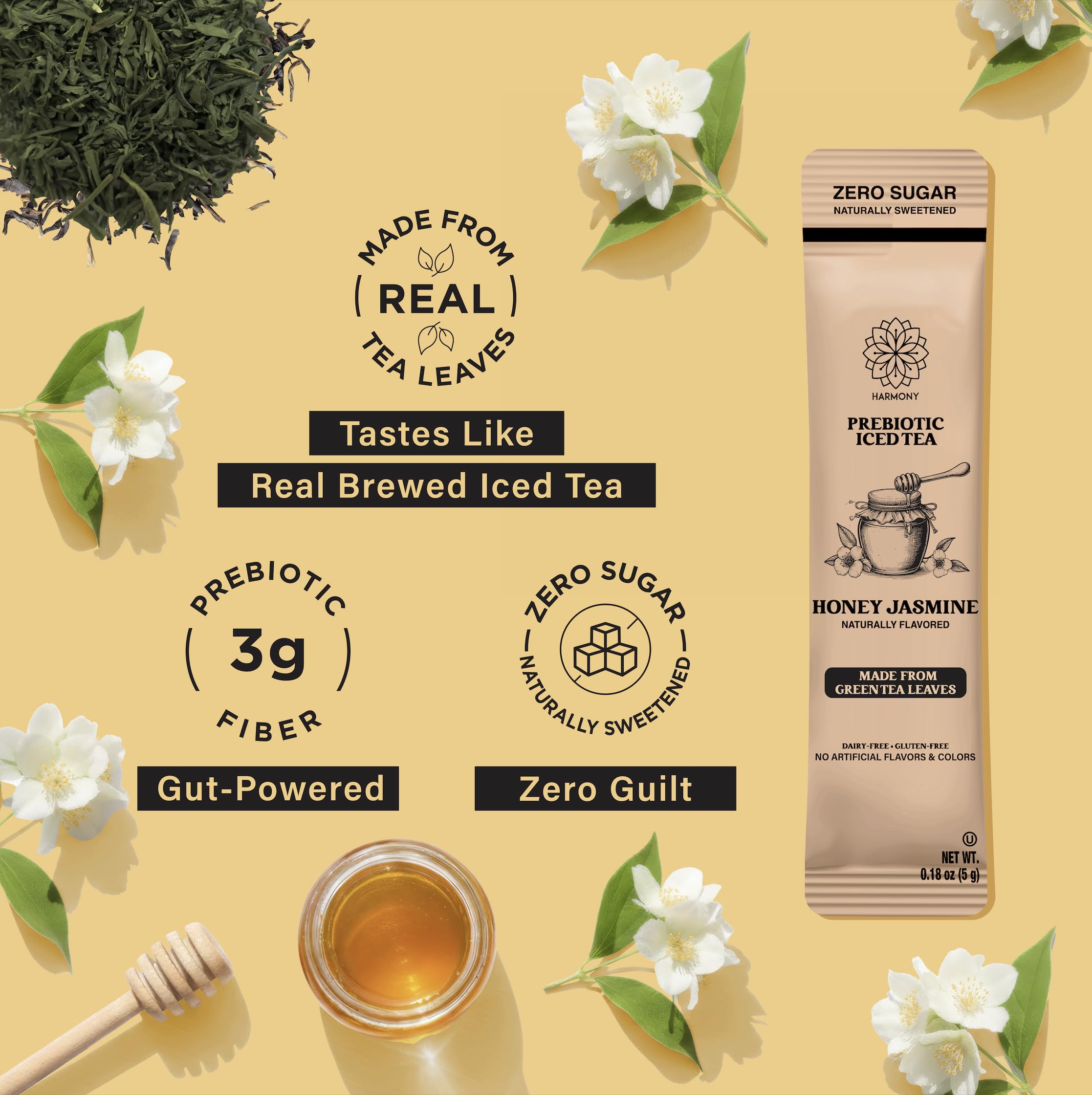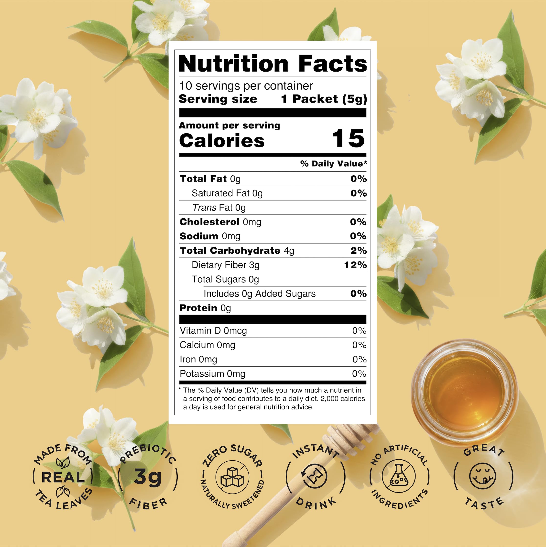 Prebiotic Green Tea Honey Jasmine Flavor, 25 Calories per Stick Pack, 10 Count