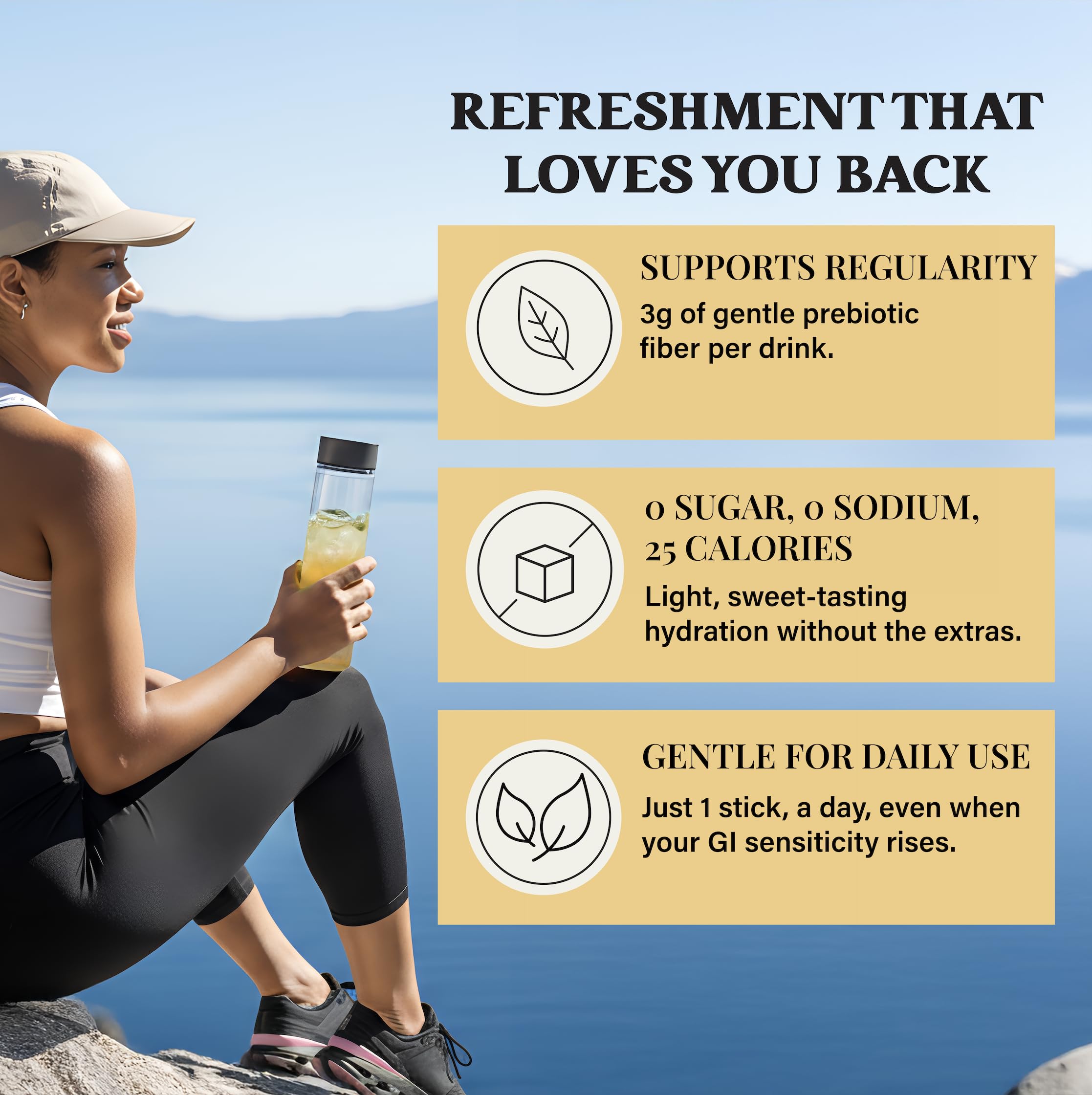 Crafted with real green tea leaves and authentic jasmine flavor, this functional beverage combines naturally sourced caffeine with prebiotic plant fiber to nourish your digestive wellness.